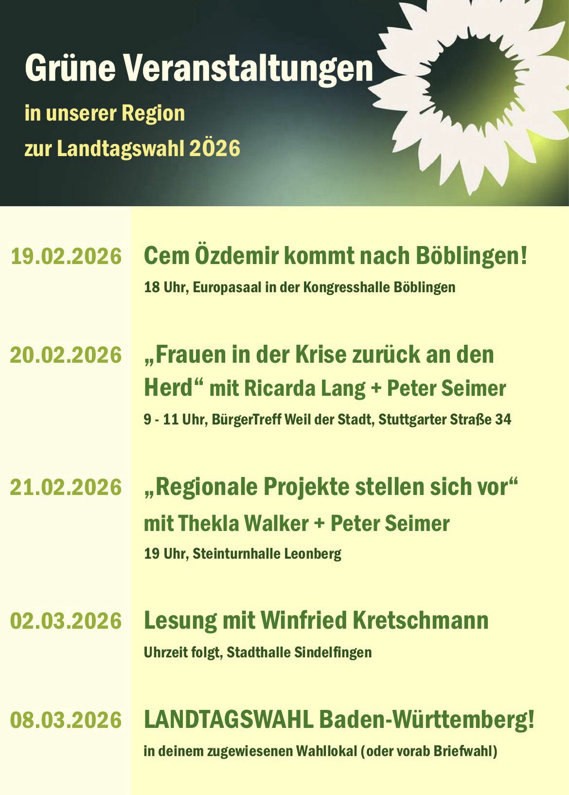 Cem Özdemir kommt nach Böblingen Donnerstag, 19. Februar 202618:00 Uhr 19.2.2026 18 Uhr Kongresshalle Böblingen, Europasaal Diesen Termin als iCal-Datei herunterladen